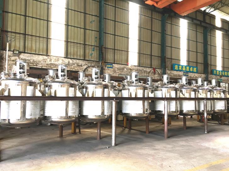 反應釜的工作原理是在釜內(nèi)放入兩種或多種的液體、固體物料(有些物料是通過慢慢滴加形式加入),利用攪拌器(槳)將物料均勻攪拌、分散、剪切、乳化、混合。通過反應釜夾層、外半管或內(nèi)盤管,來對釜內(nèi)的物料進行加熱、恒溫、冷卻反應。同時根據(jù)工藝要求可在常壓、加壓或負壓條件下進行反應。另外輔助配套的冷凝器系統(tǒng)可將一些蒸發(fā)的揮發(fā)物進行冷凝回流釜內(nèi)、接收罐回收或分離器分離等,使物料在反應過程更平衡穩(wěn)定。反應完成后將物料(產(chǎn)品)放出、泵出。